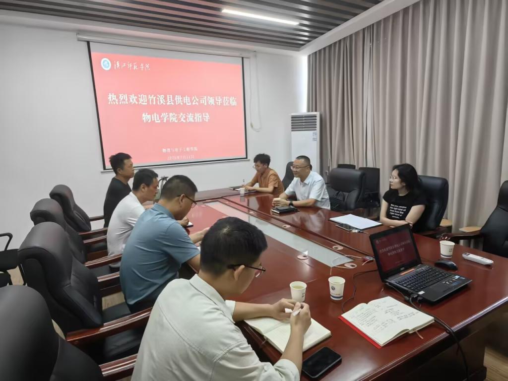 7月11日,国网竹溪县供电公司党委委员、副总经理张晏云以及公司技术骨干、公司电气工程及其自动化专业2019级员工范国林一行到访物理学院。副经理刘锋及电气工程及其自动化专业教研室主任王汉斌等骨干教师参加座谈交流。