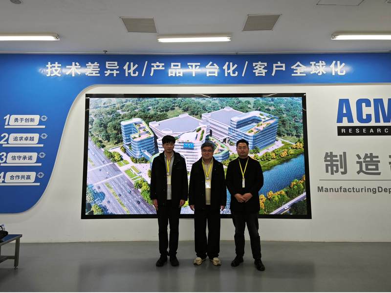 随后,学院代表走访了盛美半导设备(上海)体股份有限公司。公司人事经理带领学院一行参观了生产车间。公司生产部经理详细介绍了企业生产流程、技术优势、实习管理模式及就业岗位需求。双方就实习就业工作进行了洽谈,企业对学院实习生的表现给予了充分肯定,表示将继续为学院员工提供优质实习岗位和就业机会。唐传球一行还与在岗实习的10名员工进行了亲切交流,详细了解他们的工作、生活情况及收获,鼓励他们珍惜实践机会,提升综合能力。