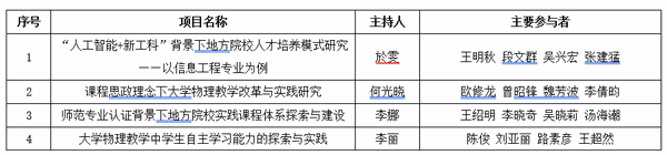 根据《关于做好2023年教学改革研究项目立项工作的通知》要求,经个人申报,学院组织专家组评审,拟将《“人工智能+新工科”背景下地方院校人才培养模式研究——以信息工程专业为例》等4个项目推荐参加2023年校级教研项目评选,现公示如下: