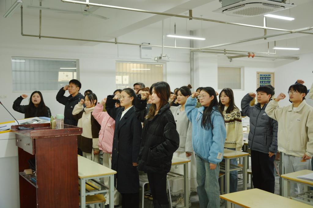 会议最后,在党支部书记王超然带领下,新发展预备党员举行了入党宣誓,与会党员重温入党誓词。