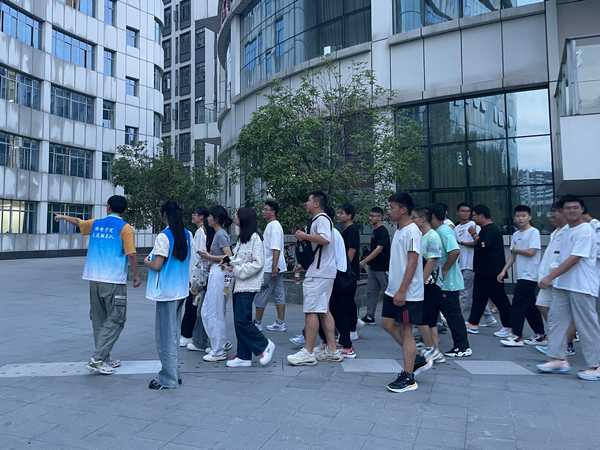 在志愿者的带领下,新生穿行在春雪楼、田径场、稻香园餐厅、尚艺楼、崇文楼、图书馆等地,每到一处志愿者都会进行讲解,新生也不时进行询问,志愿者也耐心地一一回答。