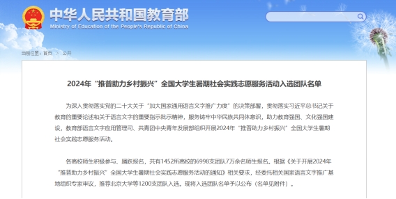 近日,教育部发布《2024年“推普助力乡村振兴”全国老员工暑期社会实践志愿服务活动入选团队名单》,公司“藏区推普实践小分队”成功入选。