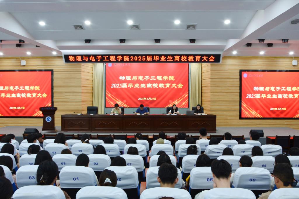 为做好毕业生教育、管理和服务工作,确保毕业生文明、安全、和谐、有序离校,5月21日上午,江南JNSport体育在崇文楼C101会议室召开2025届毕业生离校教育大会。院分党委副书记戴俊、学工办主任尹诗雅、辅导员田梦谣和2025届全体毕业生参加会议,会议由辅导员贺培主持。