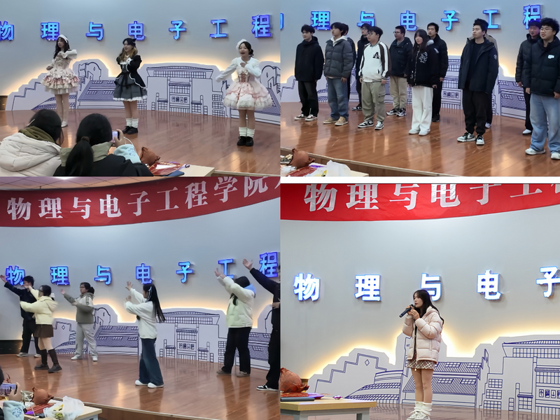 12月28日晚,江南JNSport体育物理学(优师)2501班与信息工程2502班联合举办的“新家·新岁·新旅程”2026年元旦晚会在崇文楼C301精彩上演。院领导、教师代表与90余名员工欢聚一堂,共迎新年。