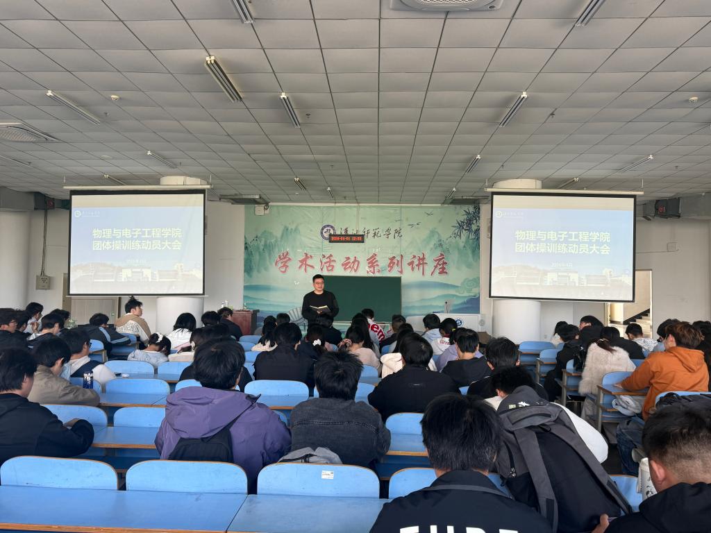 4月1日中午,团体操训练动员大会在崇文楼C201举行。戴俊对队员们的辛勤付出给予充分肯定,并从训练意义、注意事项、纪律要求及时间管理四方面展开动员。他指出,团体操是展示学院形象、培养集体荣誉感与协作能力的重要载体,要求大家严格遵守训练安排,按时参训,确保训练有序推进,重点强调了训练安全、科学饮食与规律作息。希望大家以饱满热情投入训练,妥善处理好学习与训练的关系,做到两不误、两促进。