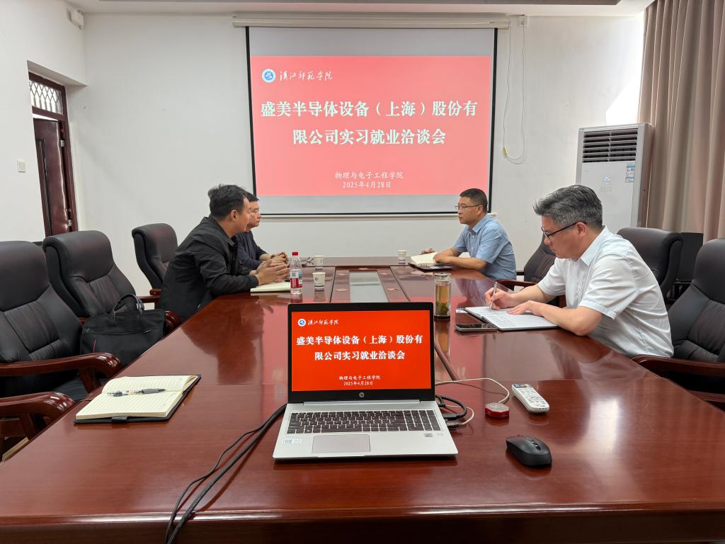 4月28日上午,盛美半导体设备(上海)股份有限公司到访公司,就实习就业相关工作进行洽谈。学院分党委书记唐传球、副经理刘锋、副书记戴俊和辅导员贺培参加会议。